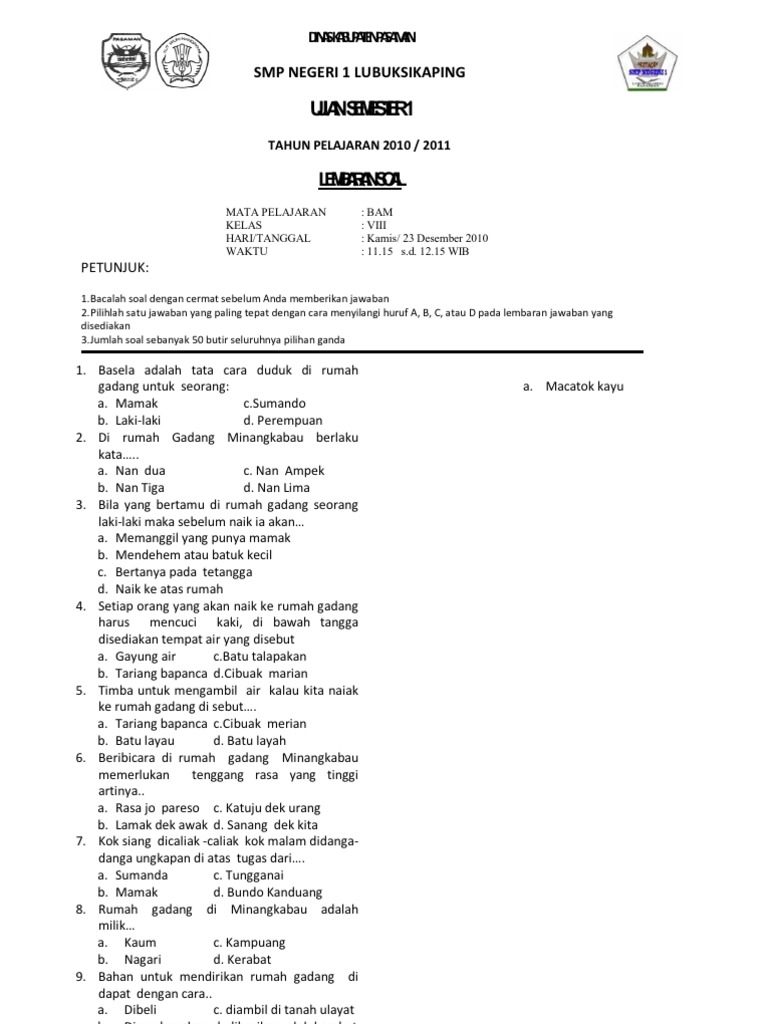 Contoh Soal Ujian Budaya Alam Minangkabau Bam Kelas Iii Sd Mi Bimbel Minda Padang from bimbel.minda.co.id Diketahui, selama pemberlakuan pembatasan kegiatan. Kunci jawaban buku siswa tema 7 kelas 5 halaman 71 73 75 76 buku tema kelas belajar. Tantri basa kelas 3 wulangan 7 pasinaon 1 gladhen 3 hal. Soal pilihan ganda kerjakan dibuku tugasmu! Demikianlah raja soal bahasa inggris memberikan sedikit soal latihan sebelum ujian semester 2 untuk kelas 1 mengenai 50 soal bahasa inggris soal ini dimulai dengan angka 51 dan itu tidak masalah karena soal. Untuk membantu menemukan jawaban yang tepat berikut kami bagikan alternatif kunci jawaban soal yang terdapat pada buku senang belajar matematika kelas 5 halaman 21, 22, 23. Check spelling or type a new query. Contoh soal pts kelas 5 semester 2 kurikulum 2013 yang coba saya bagikan ini tema 6 dan tema 7.